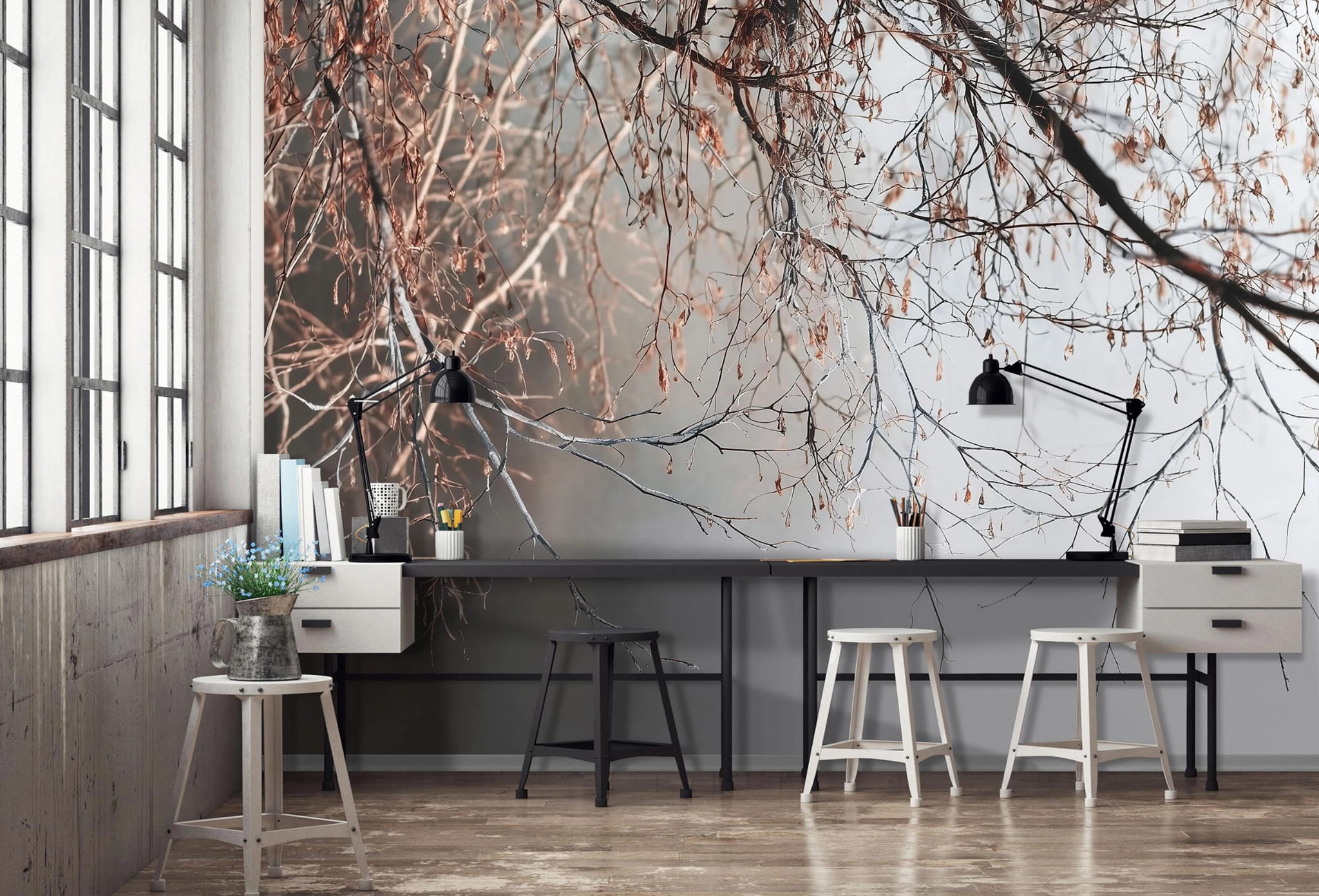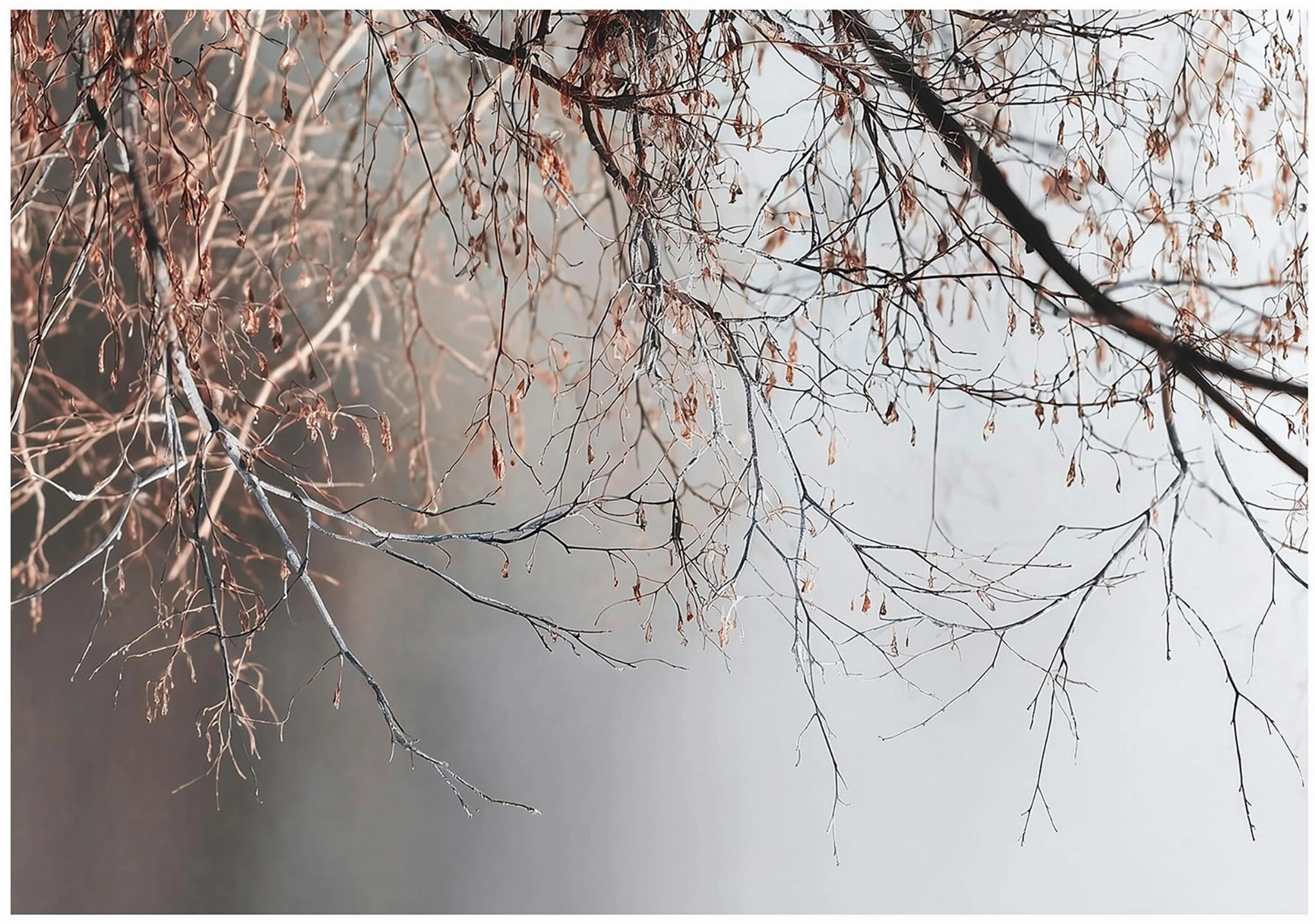 Fototapeta gałęzie drzewa brązowo szare motyw natury ozdoba ścienna