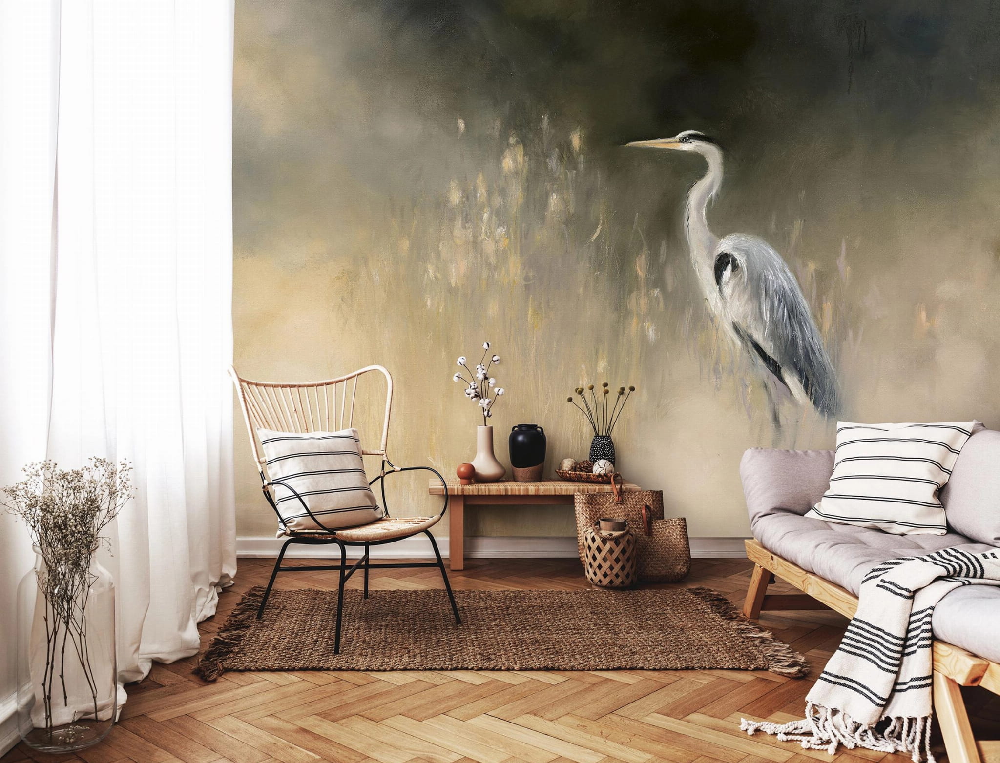 Fototapeta jak malowany obraz żywe kolory ŻURAW pejzaż pastele +klej gratis