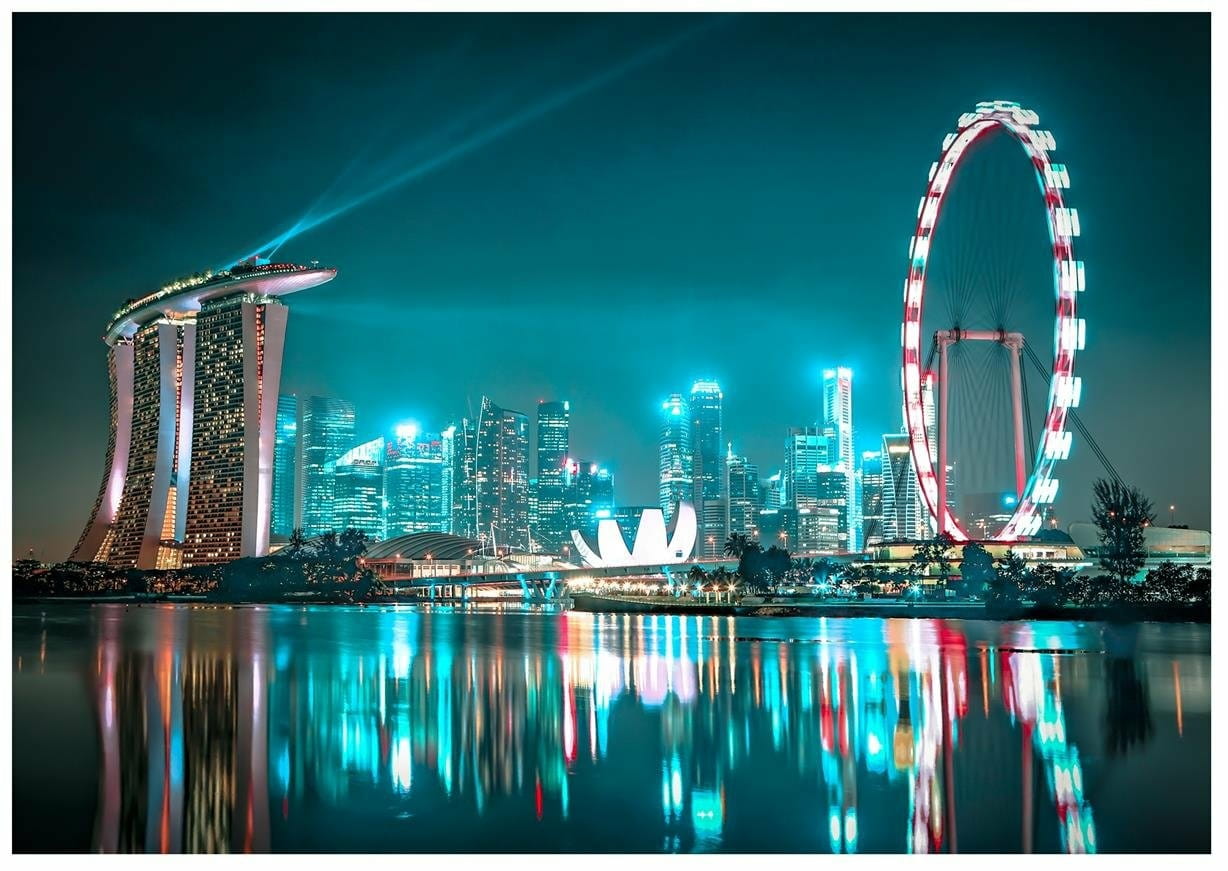 Fototapeta miasto nocą rzeka wieżowce fototapety