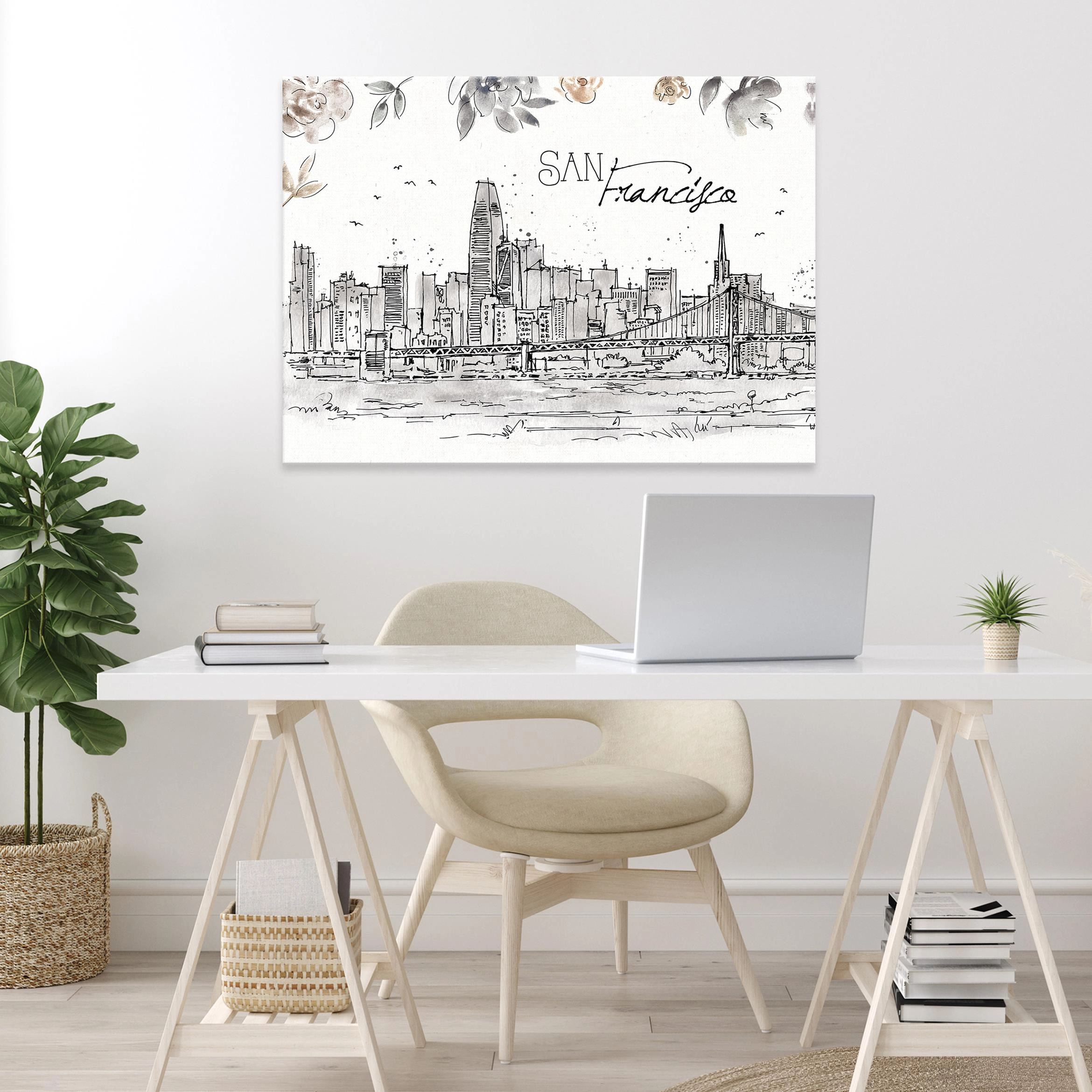Obraz na płótnie obraz na ścianę biały czarny szkic panorama san