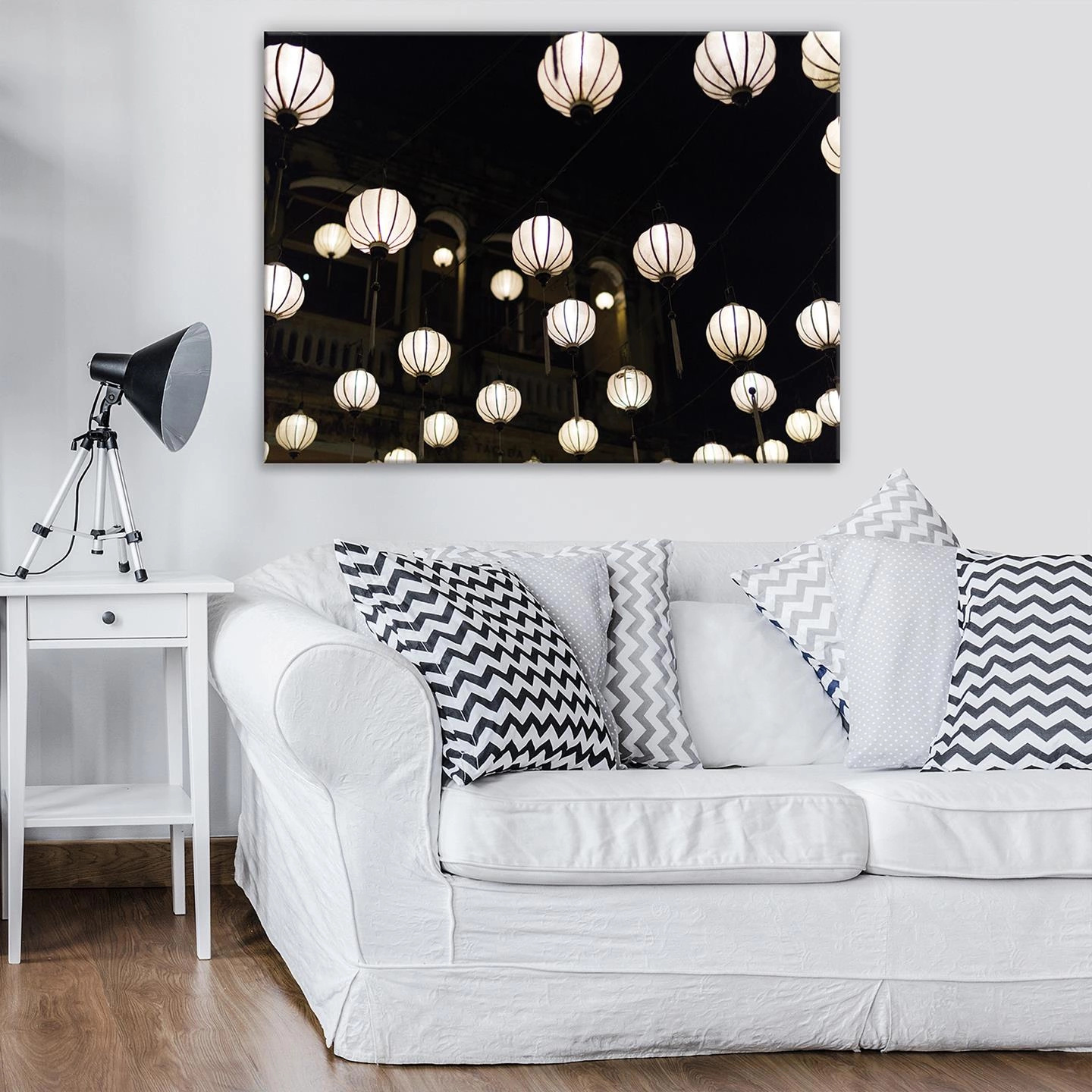 Obraz na płótnie obraz na ścianę czarny biały lampiony nocne światła