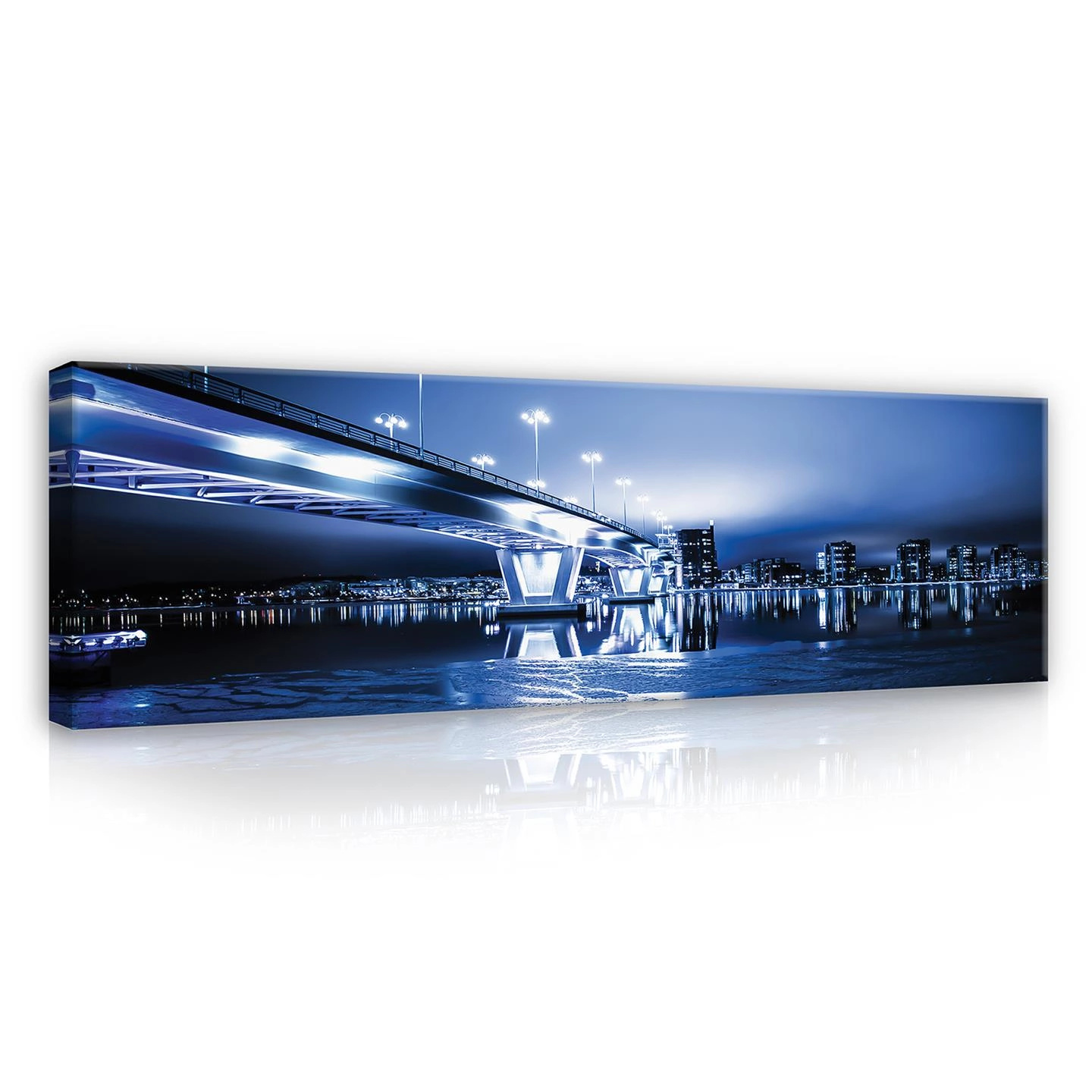 Obraz na płótnie obraz na ścianę most nocny niebieski biały 145 x 45