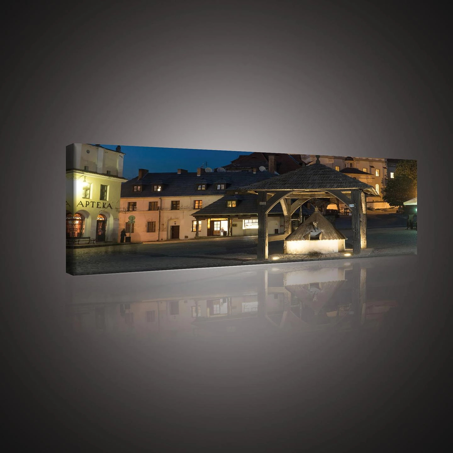Obraz na płótnie obraz na ścianę rynek nocny beżowy granatowy 145 x 45
